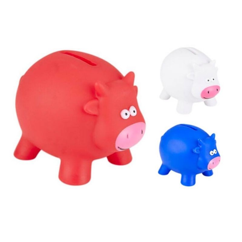 Alcancía de plástico en forma de vaca.
