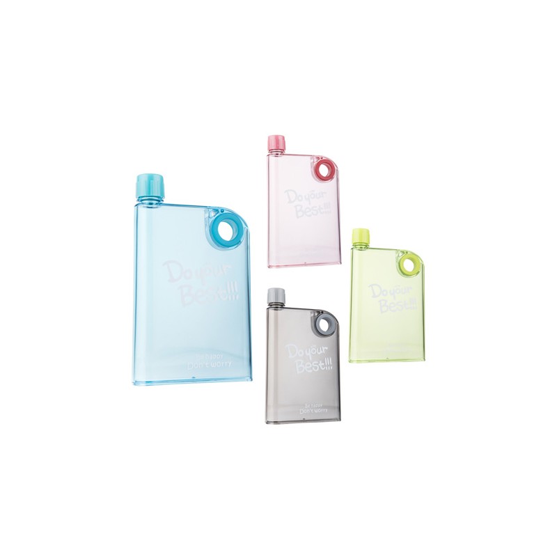 Botella plastica en forma de garrafa de color transparente con tapa de rosca.