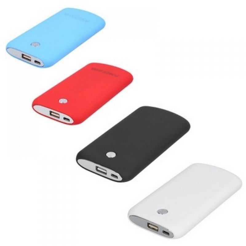 Batería portátil con acabado rubber, para carga de teléfonos, tablets, cámaras digitales, juegos, mp3, mp4. Incluye cable USB, capacidad de: 10,000 mAh