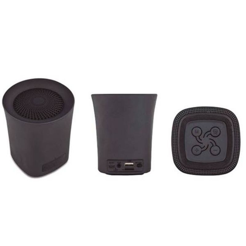 Bocina portátil de acabado rubber con display, cuenta con bluetooth, reproductor de audio, lector Micro SD, USB, auxiliar, radio y fusión manos libres. Incluye cable de carga y auxiliar. Batería recargable con duración de 4 hrs.