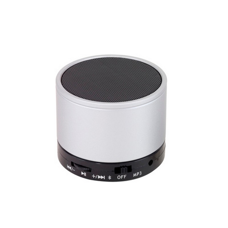 Bocina Bluetooh para reproductores MP3, lector micro SD. Entrada puerto USB. Base antideslizante. Autonomía 5 hs. Alcance 10 mts.