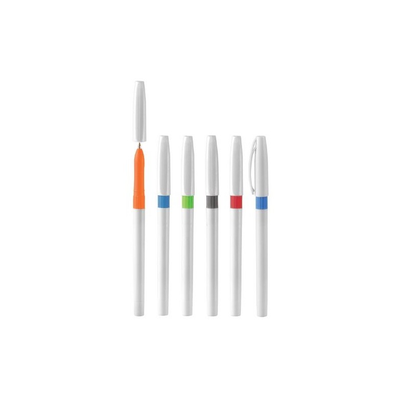 Bolígrafo de plástico con tapa.