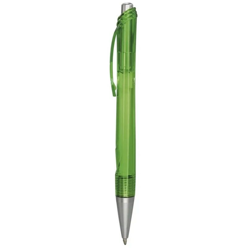 Bolígrafo translúcidos con puntas cromadas y mecanismo retráctil.