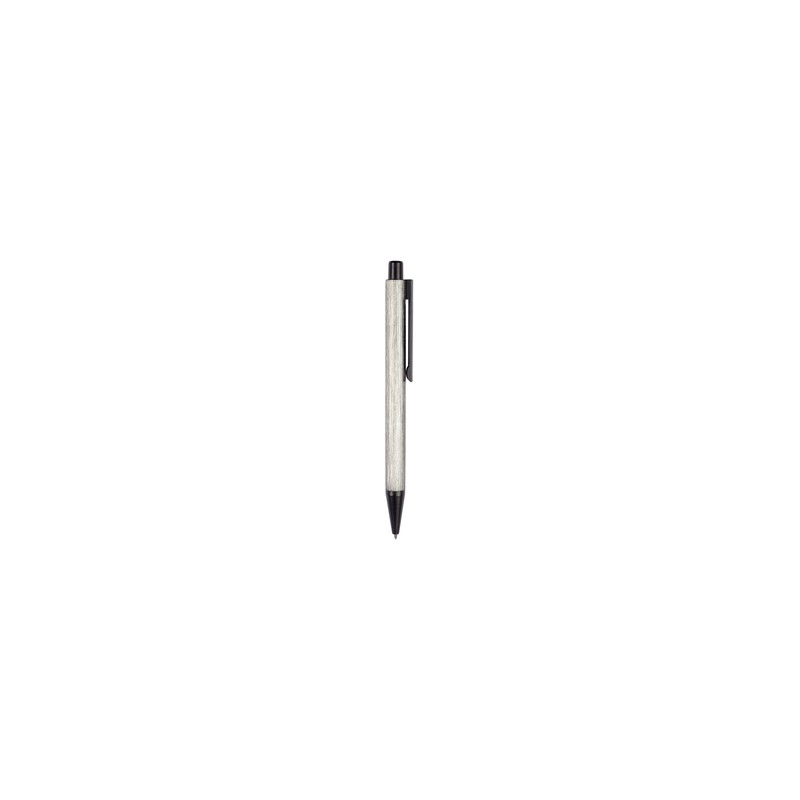 Metal. Cuerpo de color. Punta, clip y pulsador de plástico negro.