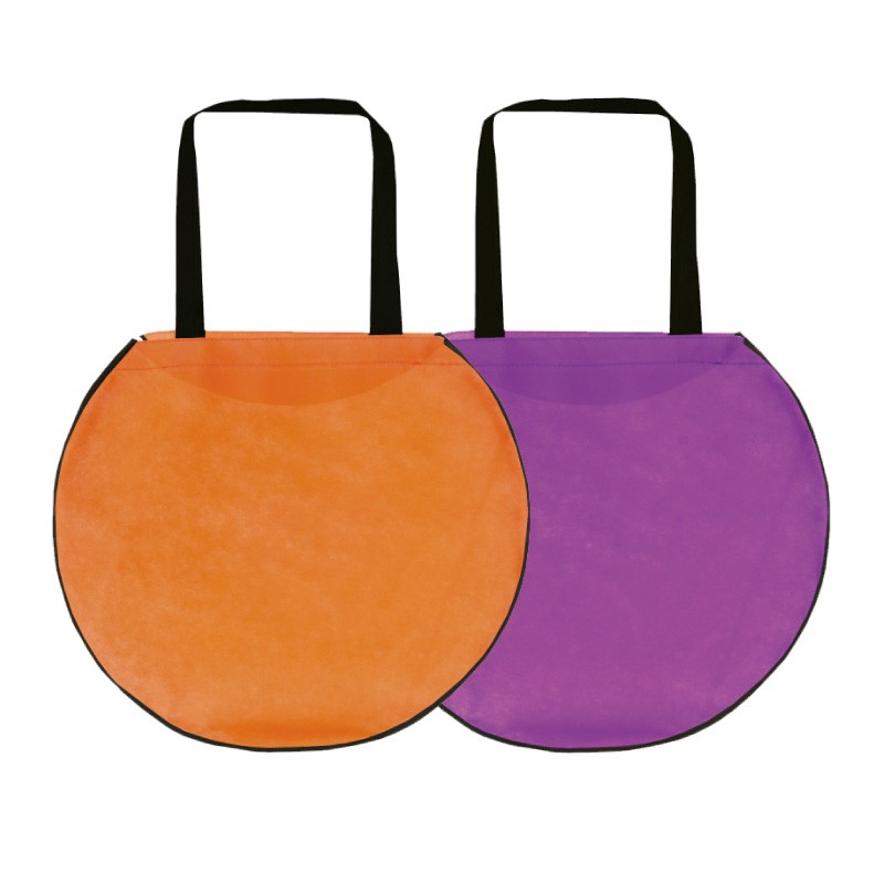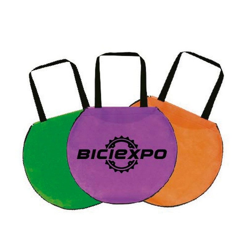 Bolsa ecológica circular con fuelle. Combinación de asas y bies.