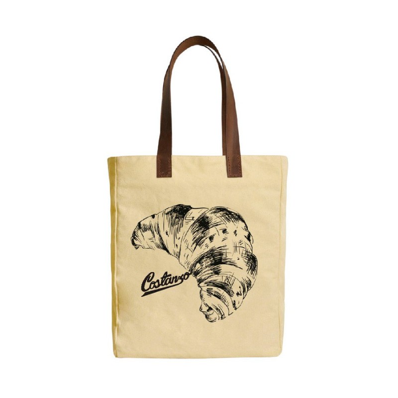 Bolsa ecológica de loneta de algodón premium, fabricada con asas de curpiel cosidas.