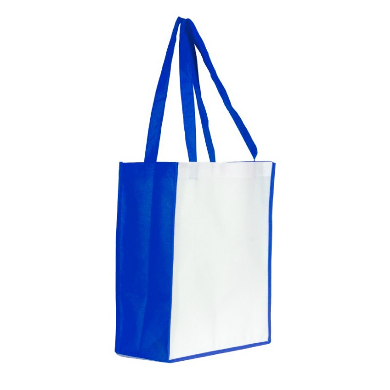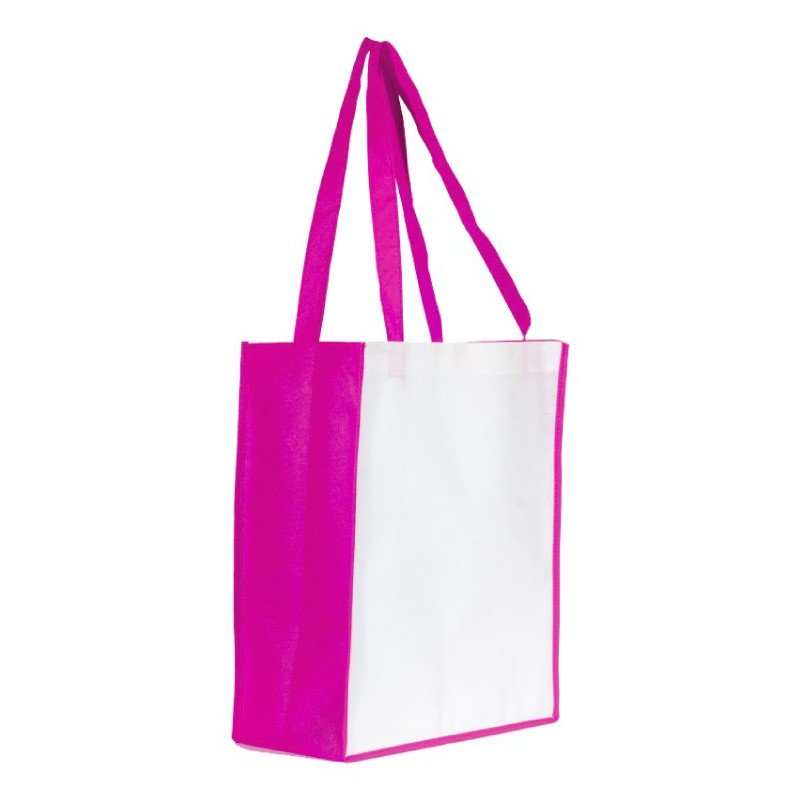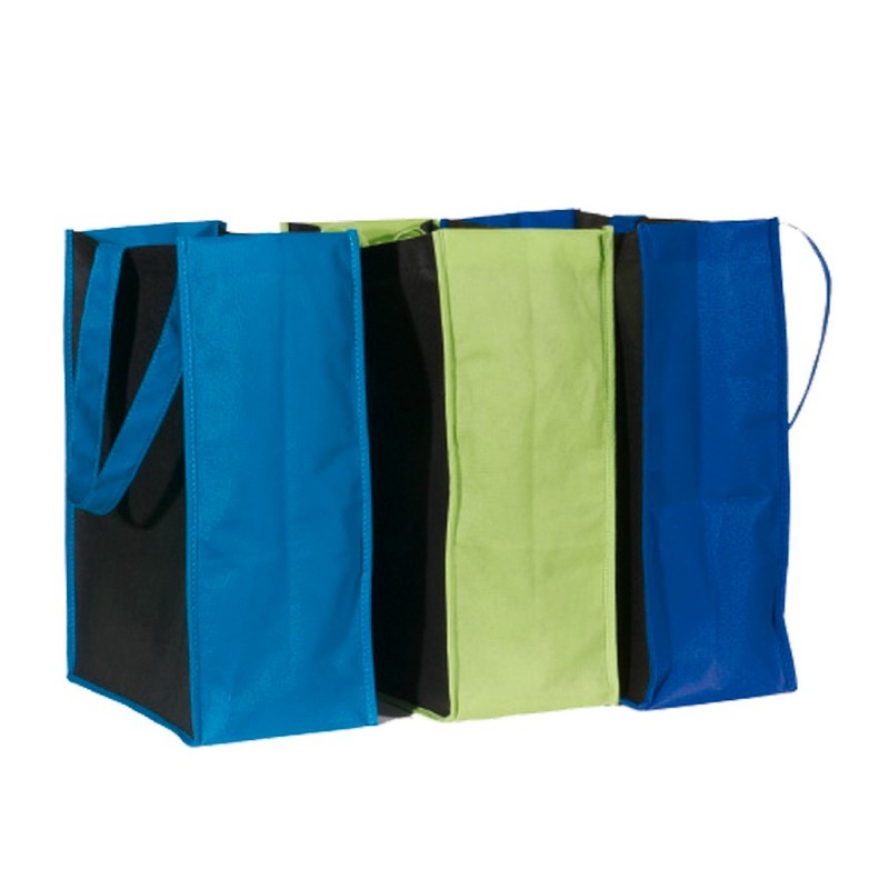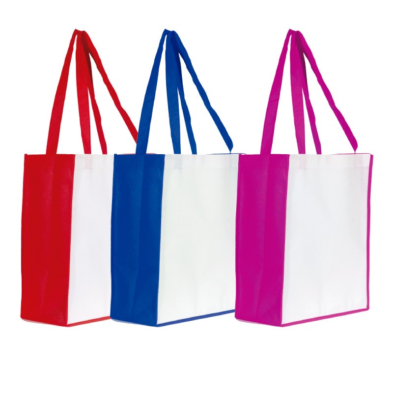 Bolsa ecológica para supermercado con fuelle y asa combinada en colores de caras.