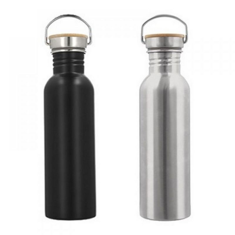 Botella de acero inoxidable con detalle de bambú en tapa Cap. 750ml