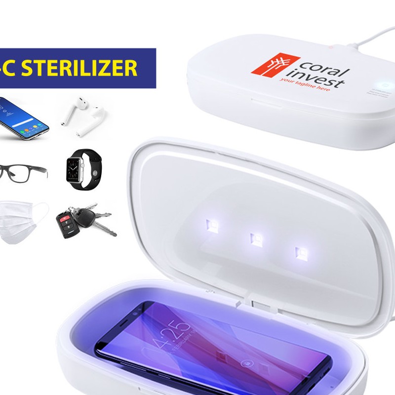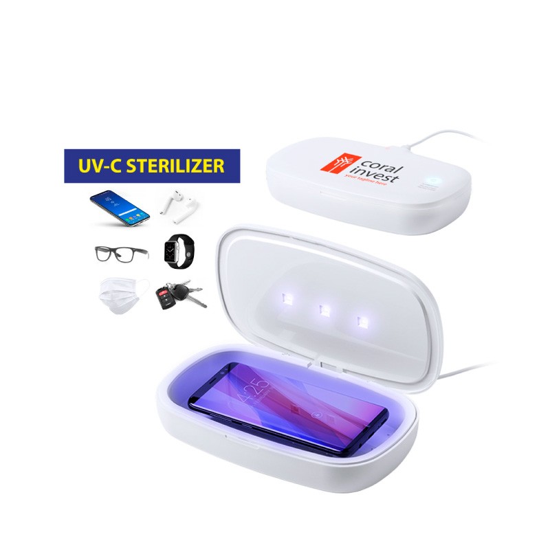Caja esterilizadora de luz ultravioleta tipo C. Especialmente diseñada para la eliminación de microorganismos y bacterias en objetos de uso cotidiano como el smartphone, llaves, gafas…