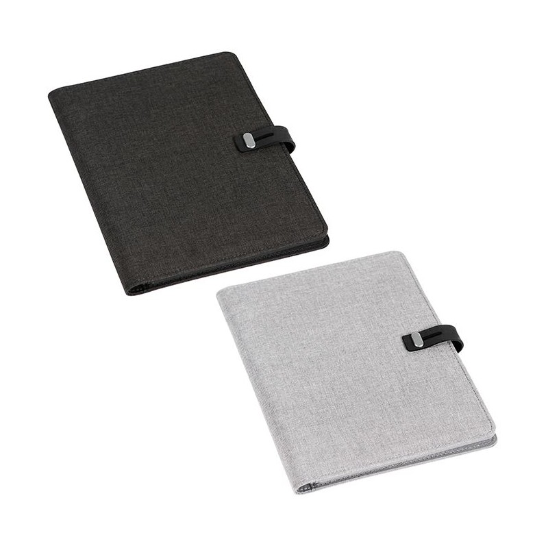 Carpeta con block de 50 hojas tamaño a4, porta pluma, broche de seguridad y compartimentos interiores.