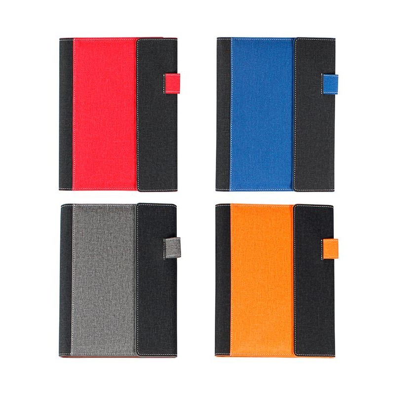 Carpeta con forro tipo curpiel, 80 hojas, espacios interiores para tarjetas, sistema de cierre con imán. no incluye pluma.