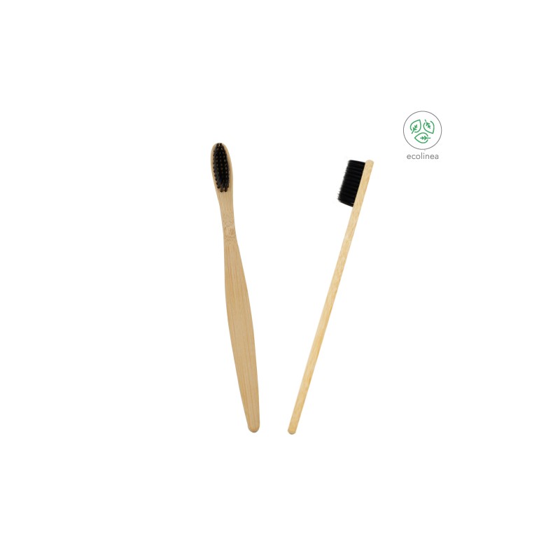 Cepillo dental ecológico esta hecho a base de bambú y fibras naturales.