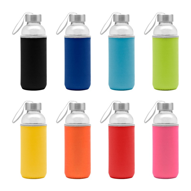 Capacidad 450 ml. Vidrio. Cuerpo traslúcido. Contiene funda