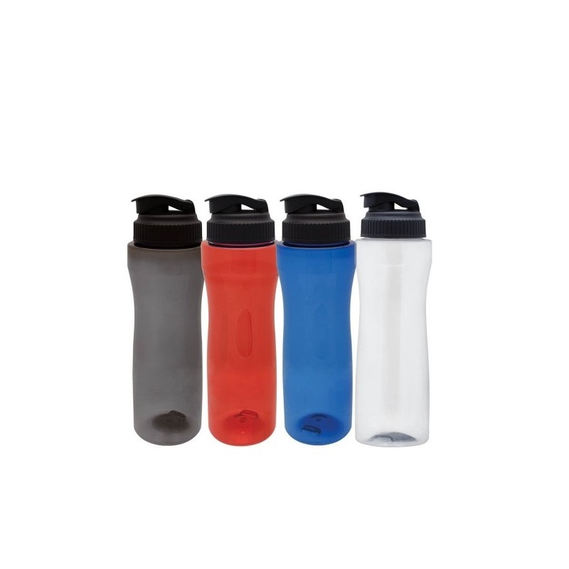 Cilindro de PET en colores traslúcidos con tapa en color negro sólido.