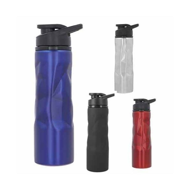Cilindro metálico de acero inoxidable con asa de plástico.
