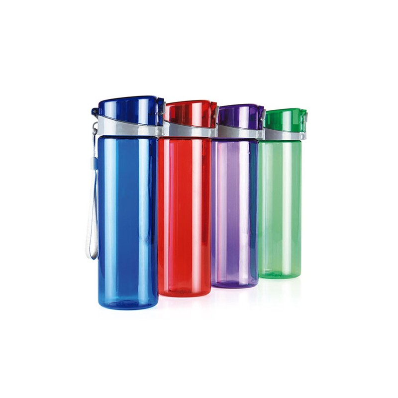 Cilindro de tritán con tapa de polipropileno y correa de nylon.