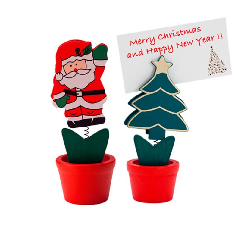 Divertido clip de madera con diseños navideños. Disponible en árbol de navidad y Papá Noel.