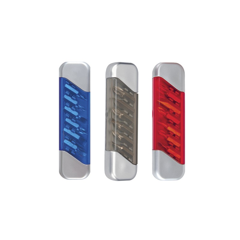 Contiene 6 diferentes puntas de desarmador (3 puntas de cruz y 3 puntas planas).