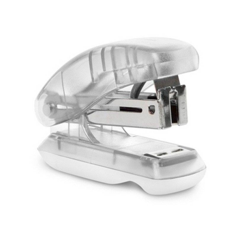 Engrapadora de escritorio con saca engrapadora en la parte trasera.