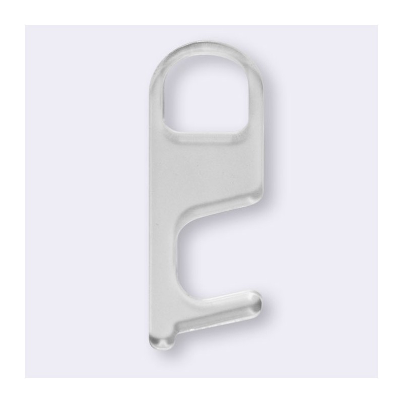 Herramienta de acrílico que evita el contacto directo con superficies, ideal para abrir puertas y presionar botones.
