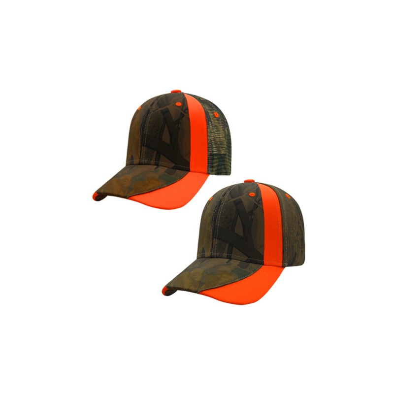 Gorra camuflajeada con detalles en naranja (Con o sin malla).