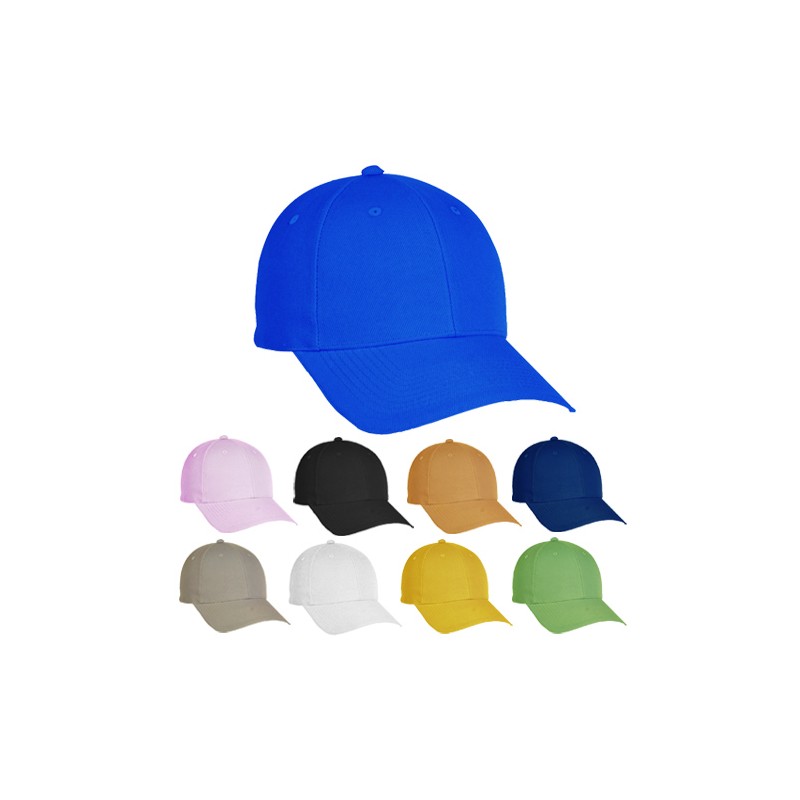 Gorra de algodón de 6 paneles con broche de plástico y refuerzo.