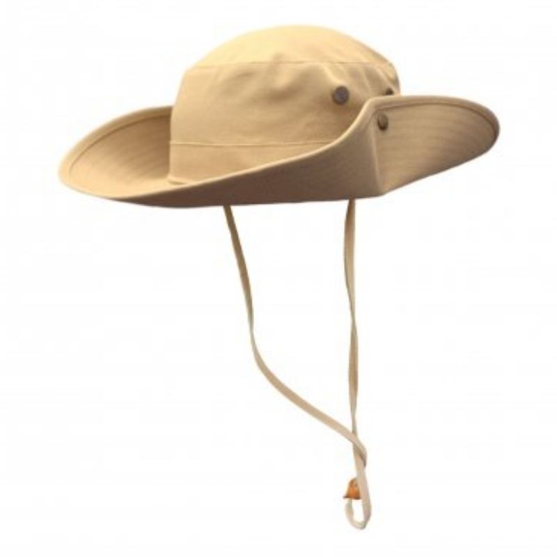 Sombrero Safari 100% algodón, corte bajo, broche de metal.