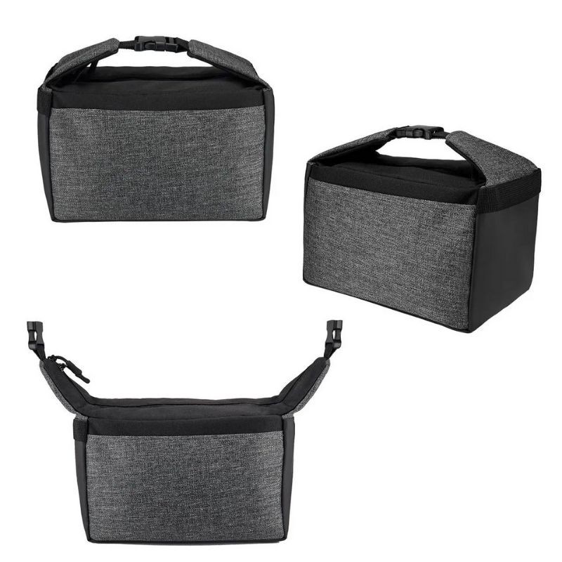 Interior plastificado. Bolsa frontal y agarradera con broche de plástico.