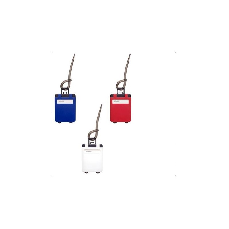 Cuenta con etiqueta para poner nombre, lazo para colgar en la manija del equipaje.