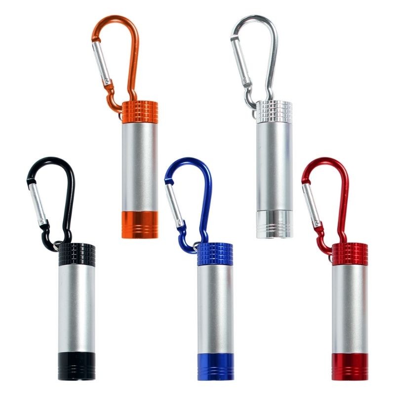 Lampara mini de metal con arnés y luz interior para resaltar el logo.