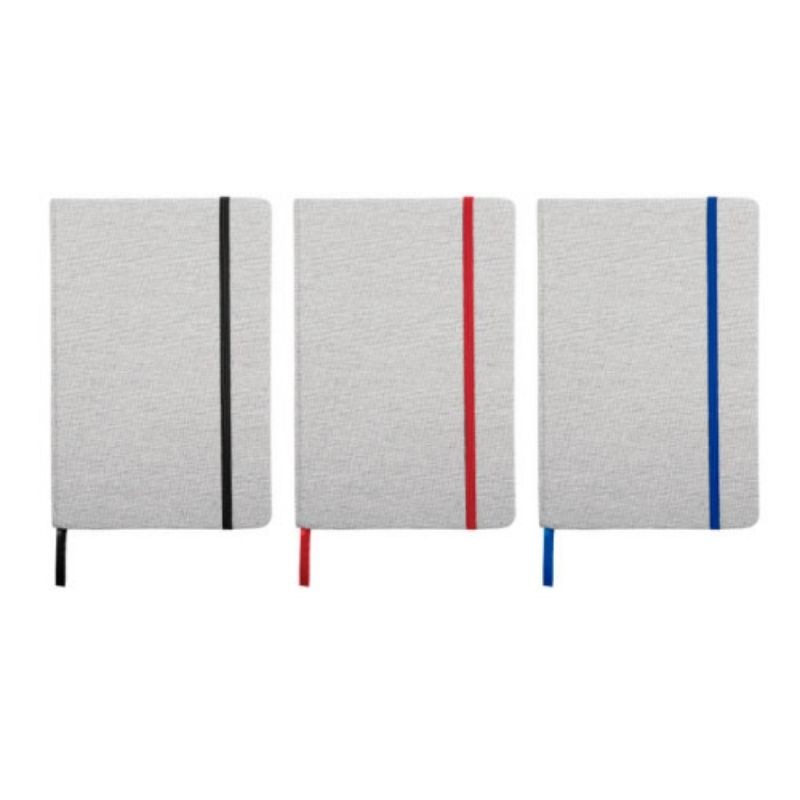 21 x 14 x 1,3 cm (cerrado) 21 x 28 x 1,3 cm. (abierta) Libreta de tela. 80 hojas rayadas, color crudo, señalador de tela y elástico de color que cierra o sostiene la hoja.