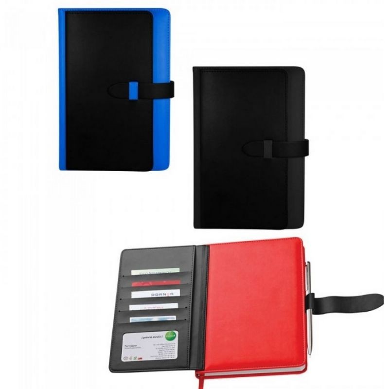 Libreta A5 de PU, porta tarjetas y porta bolígrafo, con 128 hojas rayadas.