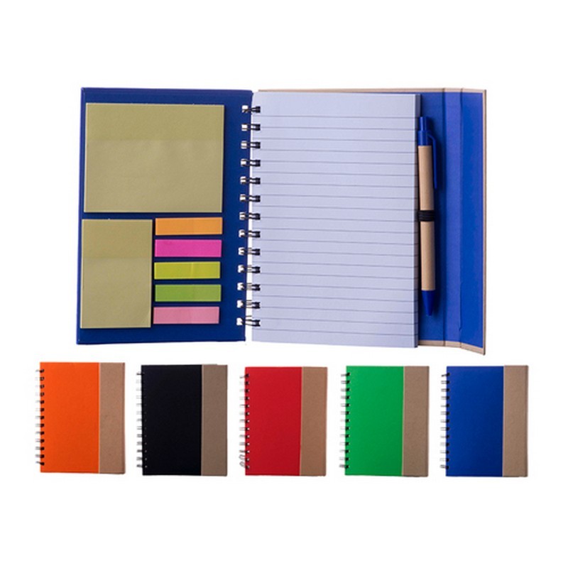 Libreta ecológica de espiral con pluma de papel reciclado.