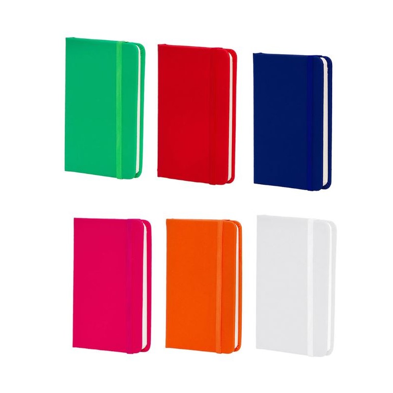 Libreta con cubierta dura de PU, banda elástica, separador, 96 hojas rayadas.
