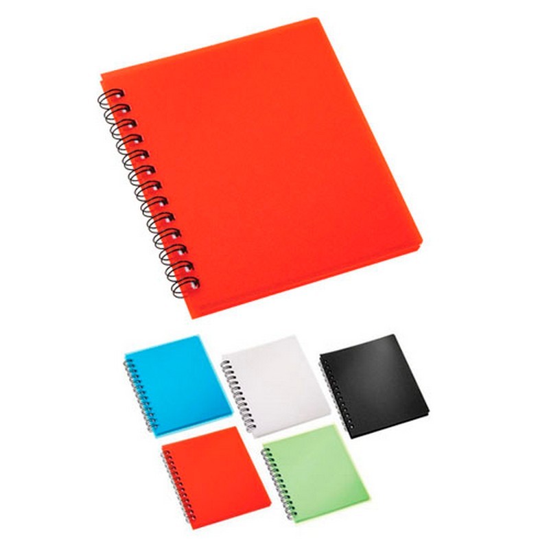 Cuaderno con forros de plástico y espiral con 50 hojas de raya.