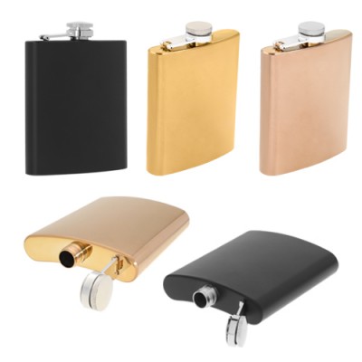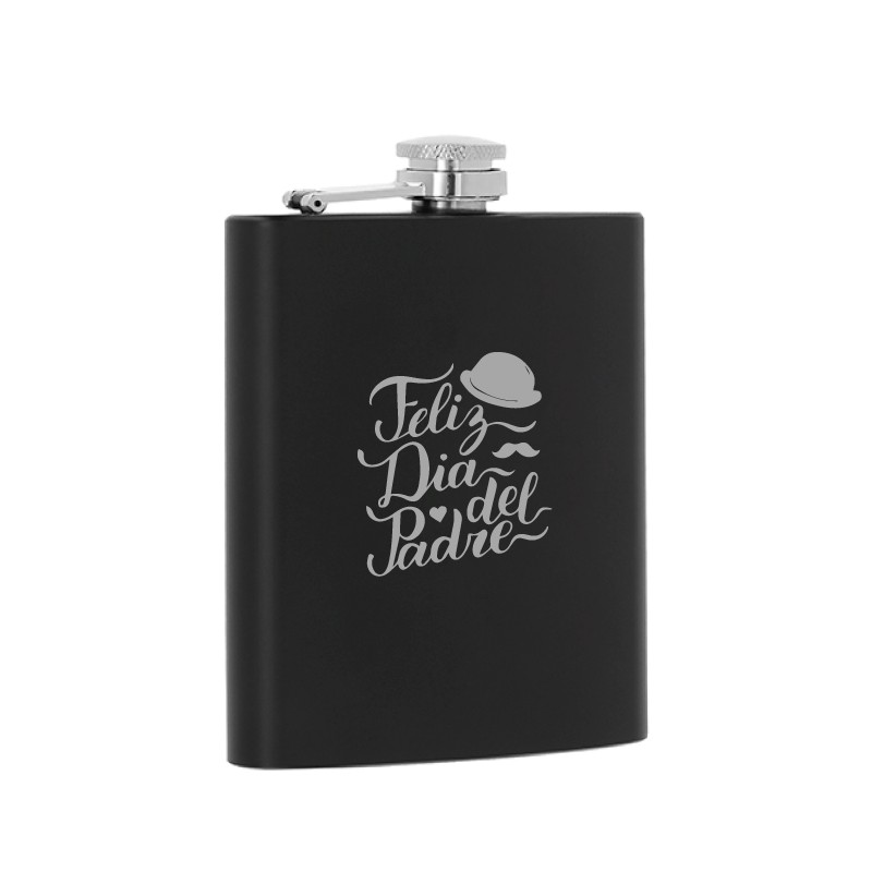 Licorera de bolsillo de acero inoxidable con tapa enroscable. Cap. 7 Oz.