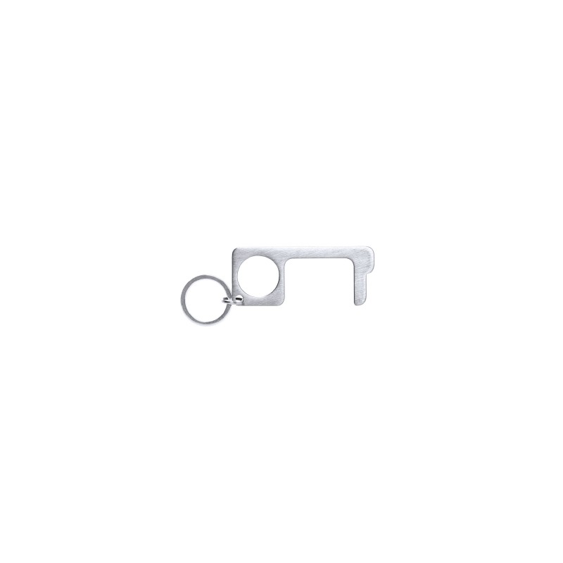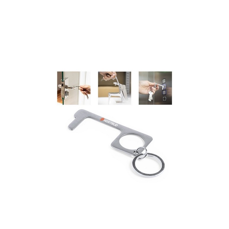Llavero higiénico anti-contacto, fabricado en resistente acero inox.