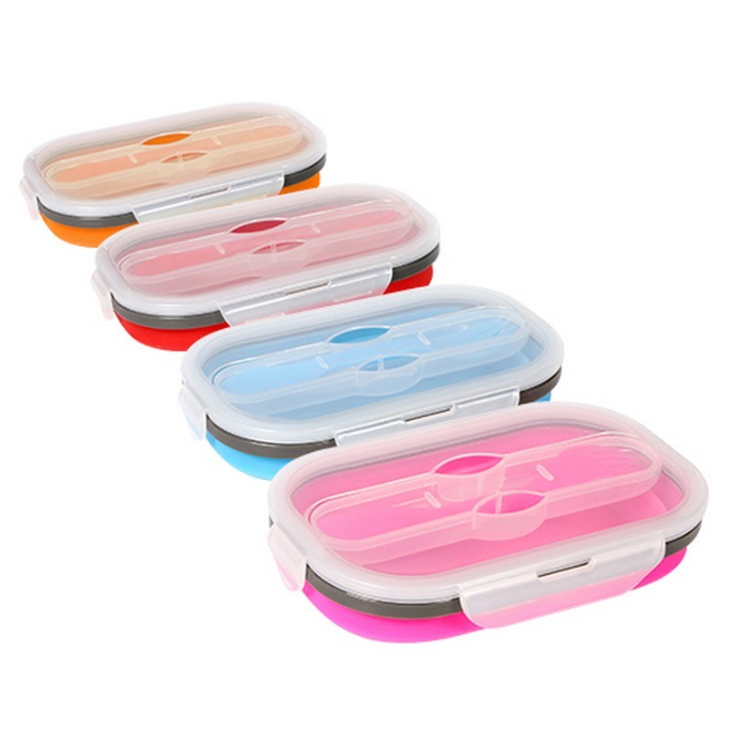 Contenedor de alimentos plegable con cubierto 3 en 1 (cuchara, tenedor y cuchillo).