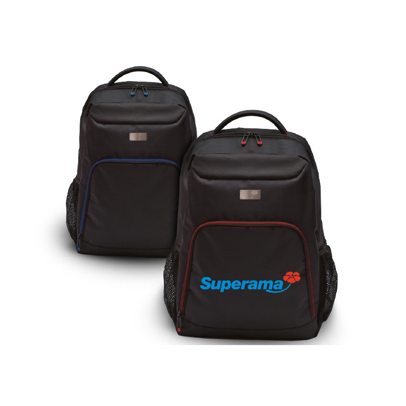 compartimento para credenciales y bolígrafos, bolsas laterales de malla,