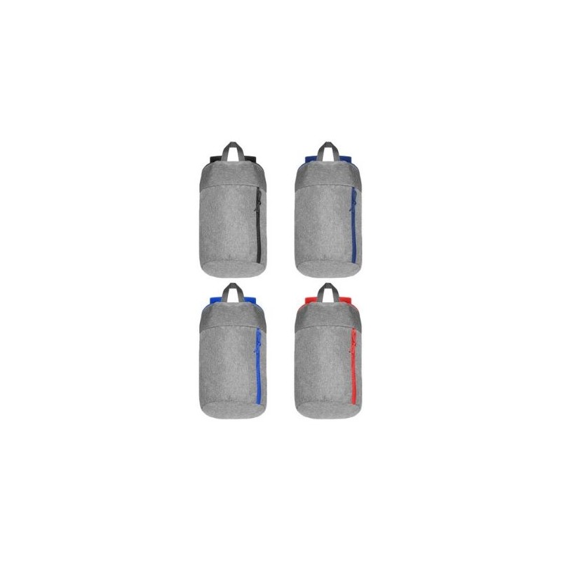Mochila con un compartimento featured, bolsillo frontal con cierre, detalle de color en la tira y hebilla de soga del mismo color. La parte de atrás acojinada de color.