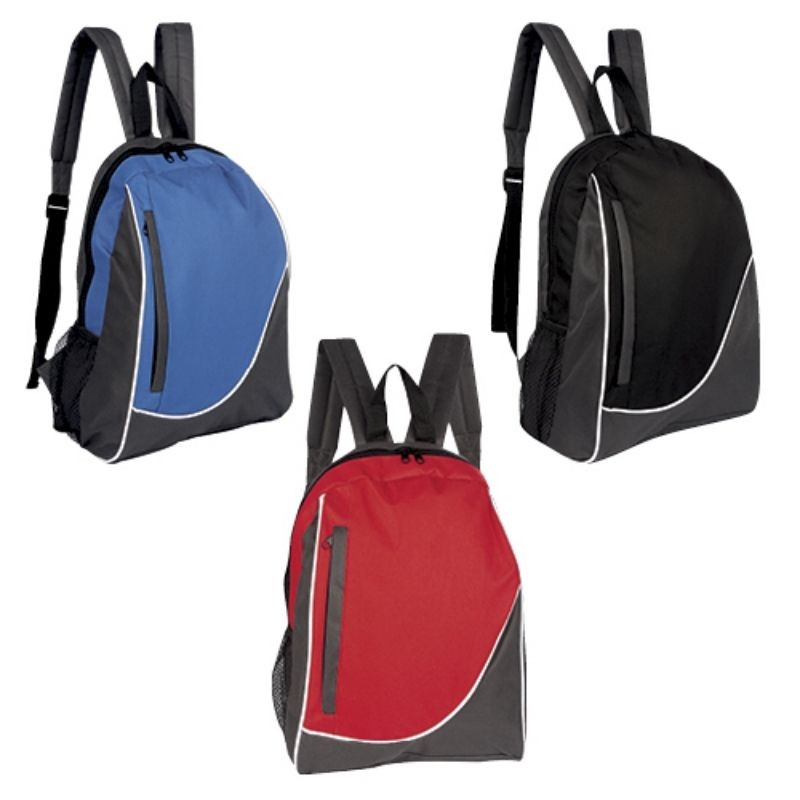 Mochila con bolsa frontal y bolsa lateral de red.