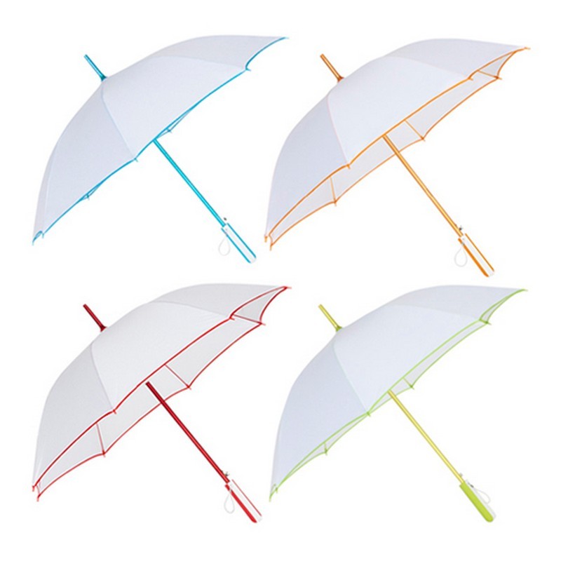 Paraguas automático. 8 paneles y mango de plástico. Estructura en colores metalizados. Incluye funda con agarradera.
