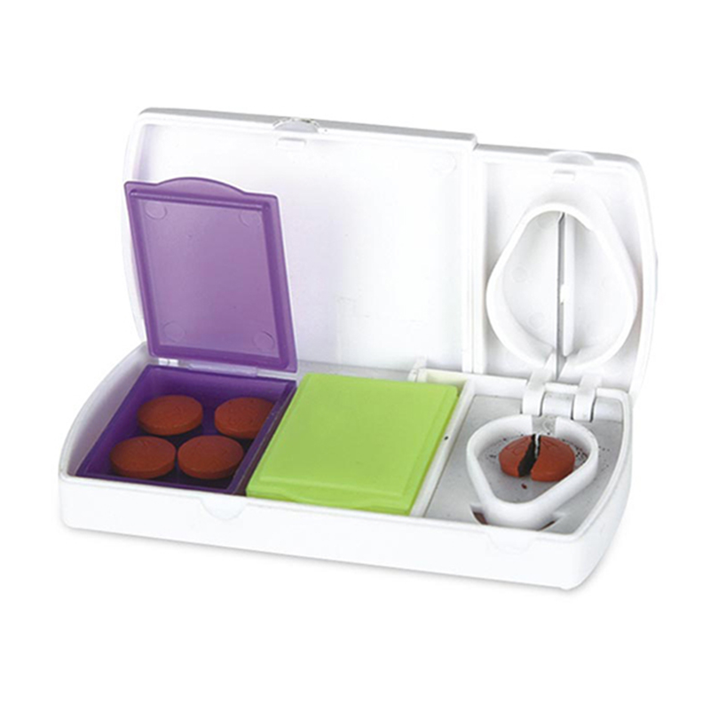 Pastillero cortapastillas. Incluye: Dos estuches para separar medicamentos.