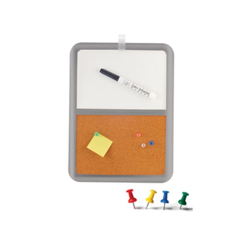 Mini pintarrón con imán, plumón, corcho y 4 chinches.