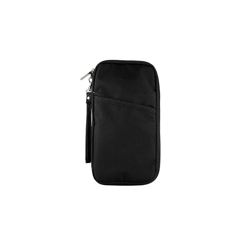 Compartimento para pasaporte, visa, boleto de avión y tarjeta de crédito. Incluye correa.