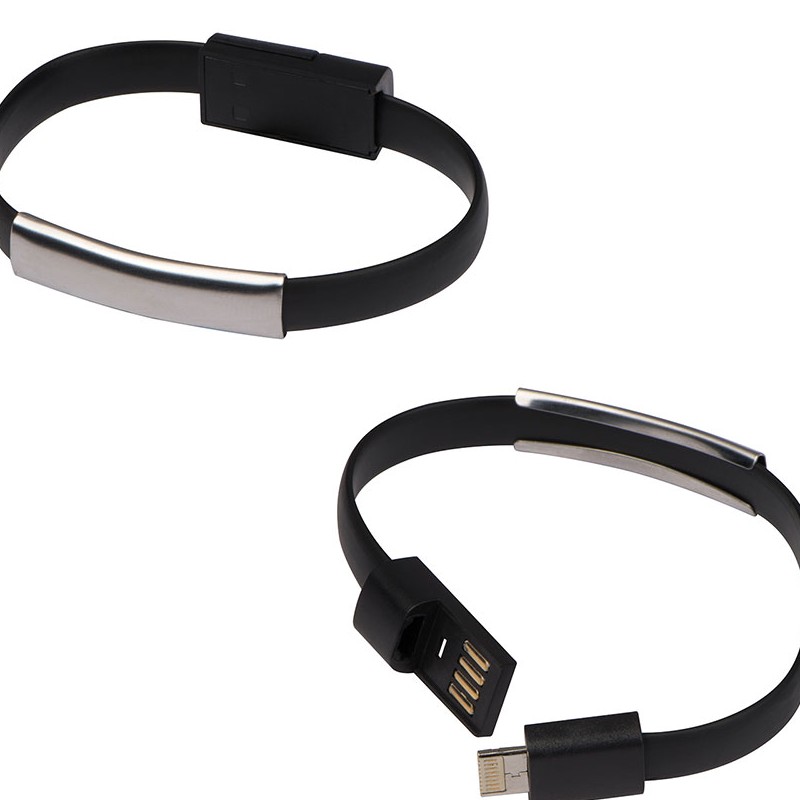 Pulsera cargador de silicón y placa metálica para transferencia de datos. Compatible para iOS y Android.