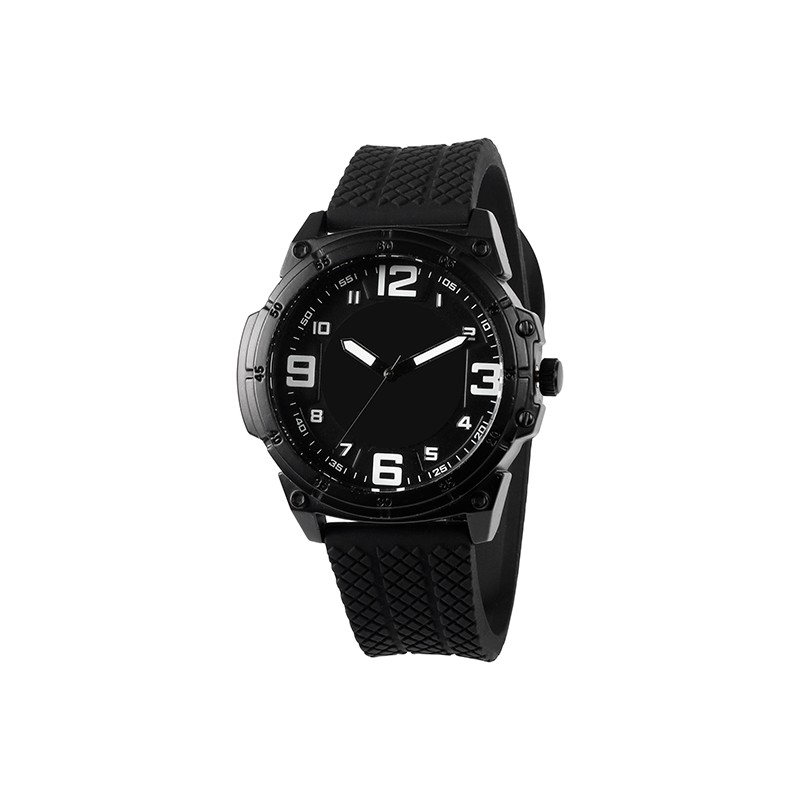 Reloj de pulso color negro con caja metálica y correa de silicón, maquinaria metálica japonesa. incluye estuche metálico individual.