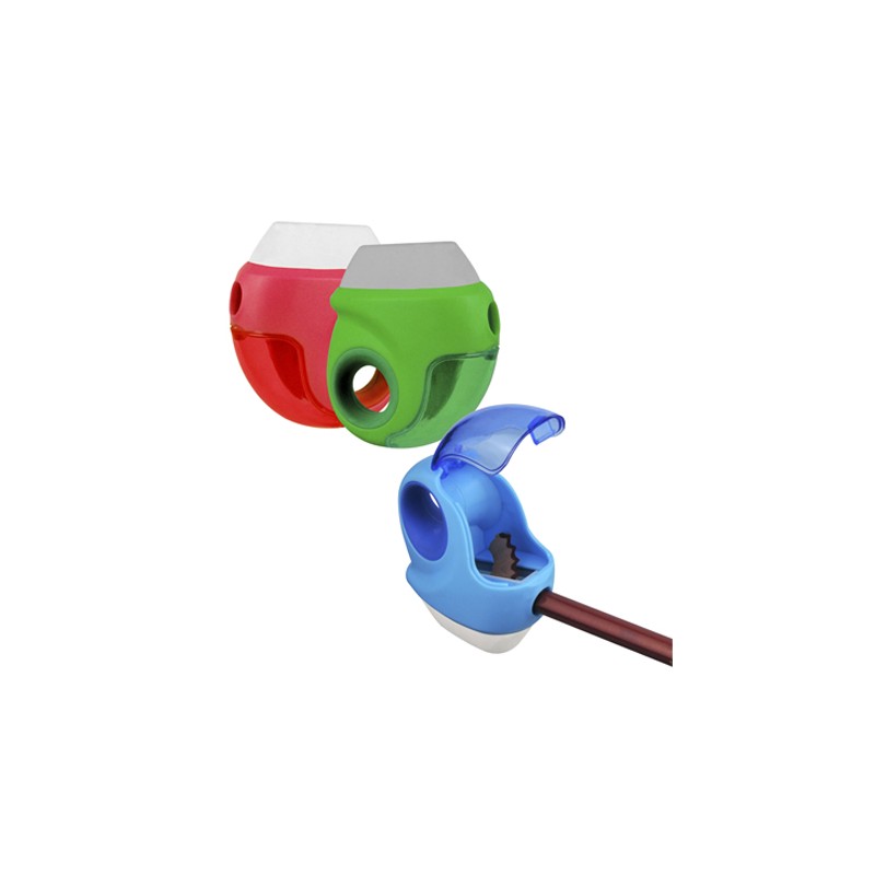 Sacapuntas con goma y depósito para basura.