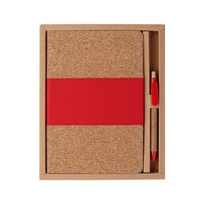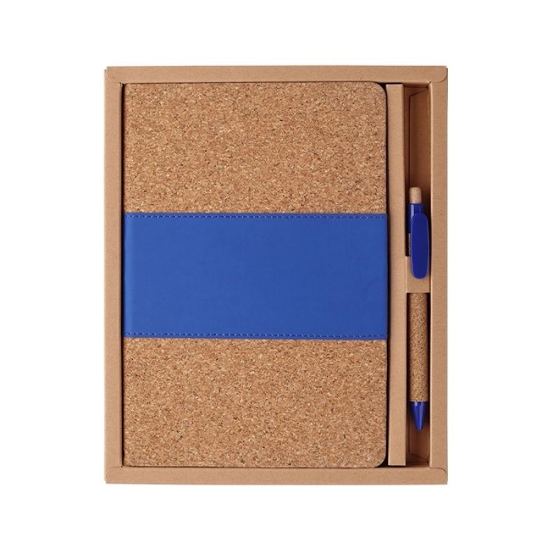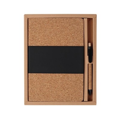 Set de libreta con 80 hojas de rayas fabricada en corcho y pu con bolígrafo tinta negra fabricado en corcho y abs.