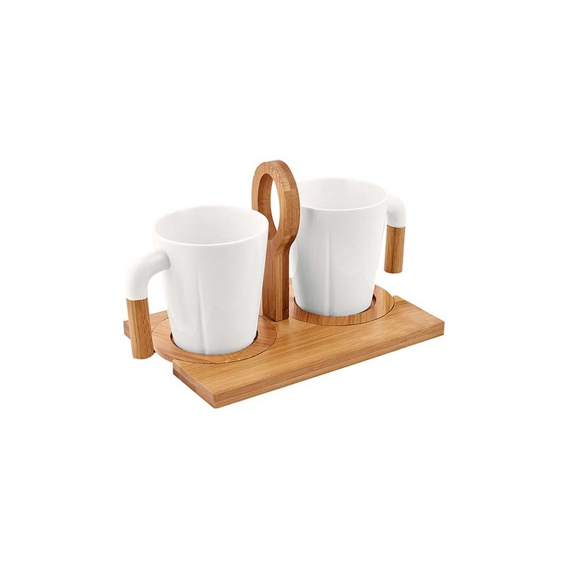 Descripción: SET DE TAZAS IWAO (Incluye dos tazas, dos porta tazas de bambú y caja de regalo. No usar en microondas ni lavavajillas.)